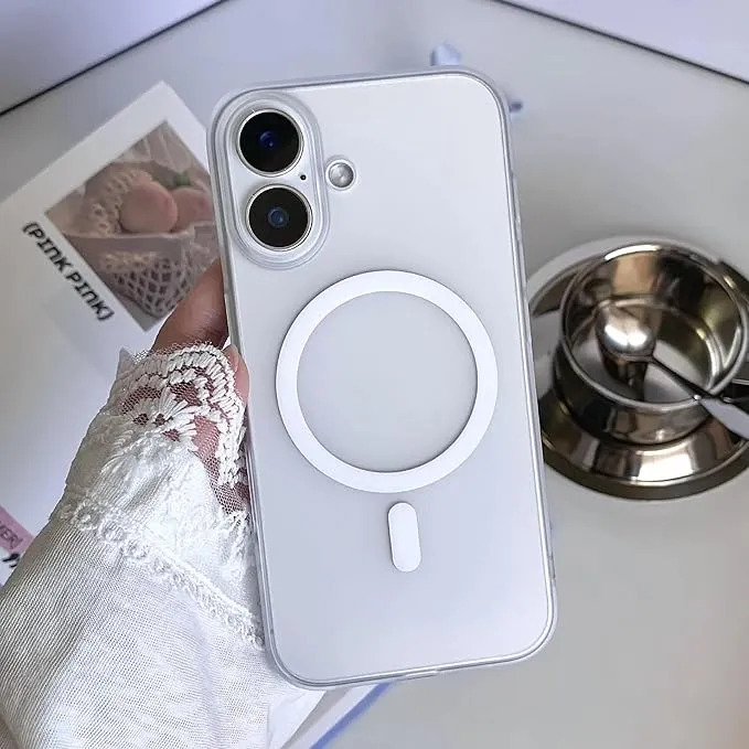 Su diseño ultrafino proporciona protección adicional para tu iPhone 16. La funda cuenta con las aberturas y teclas necesarias para un uso suave. La superficie está hecha de material flexible importado de PC + PU + MagSafe, suave y cómodo al tacto, evitando que el teléfono se resbale.