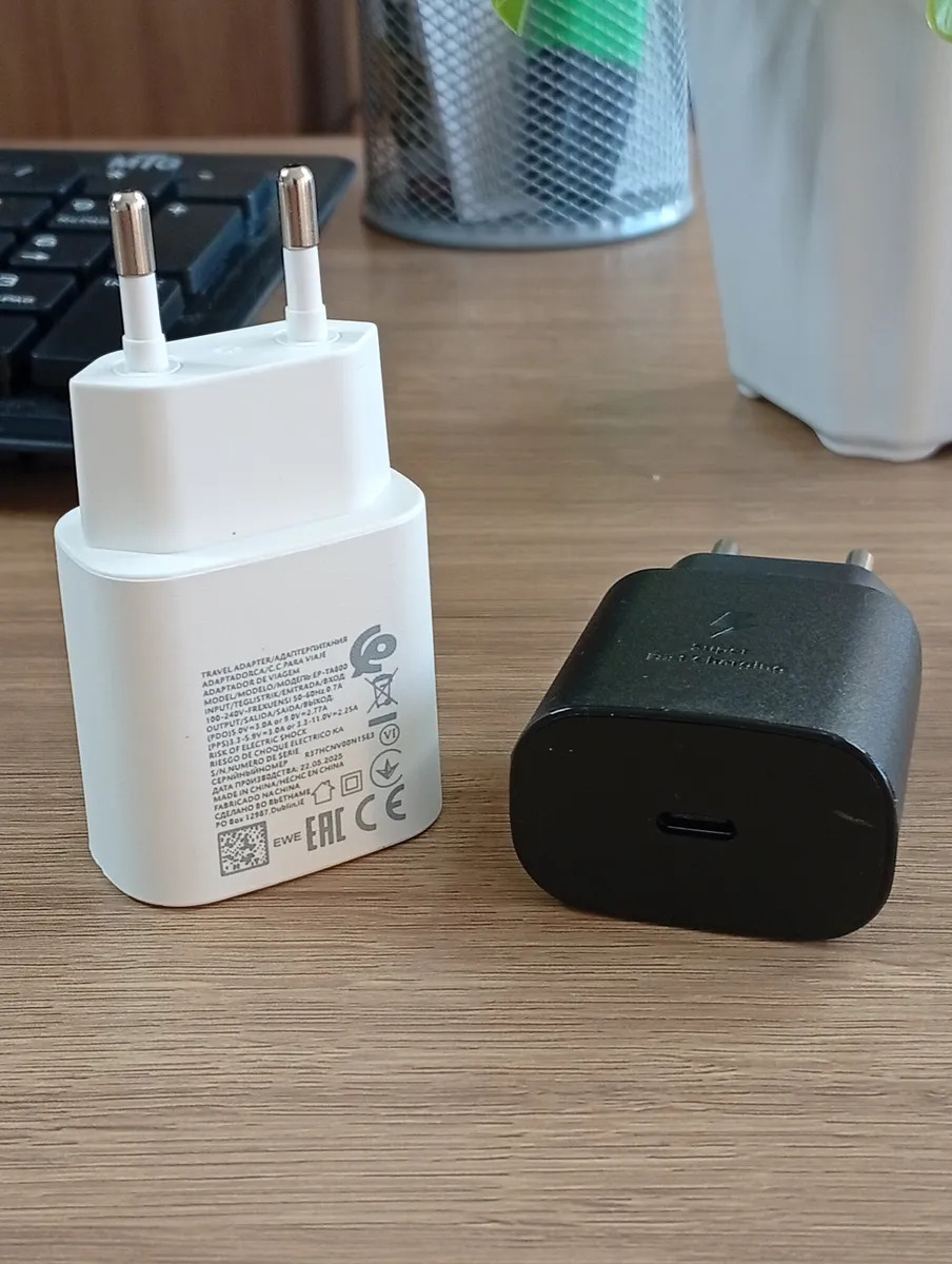 Wall Charger no solo carga los dispositivos Samsung rápidamente, sino que también funciona con otros modelos. Los dispositivos que sean compatibles con Standard PD 3.0 obtendrán una carga máxima de 25 W, mientras que los otros se cargarán a otras velocidades. Conseguilo en blanco o negro
