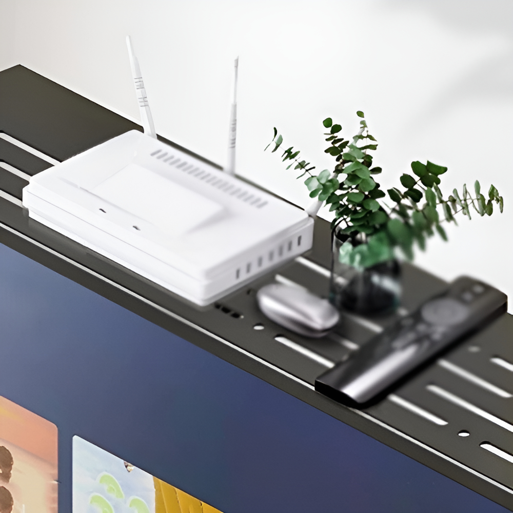 Fácil de instalar; Colócalo en la parte superior de la pantalla y ajusta ambas patas hasta que el estante se vuelva plano, universal para la mayoría de televisores y computadoras de escritorio.