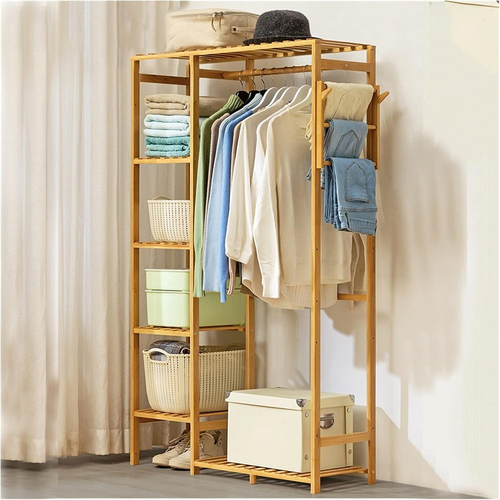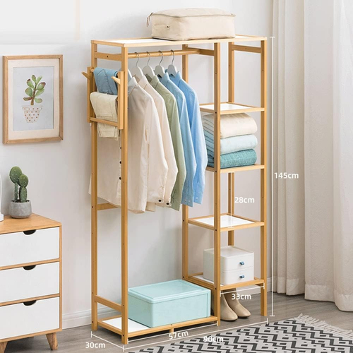 Opta por la estantería perchero de pie de bambú y transforma tu espacio en un lugar más ordenado y acogedor. Su diseño versátil y funcionalidad la convierten en una elección inteligente para cualquier hogar.