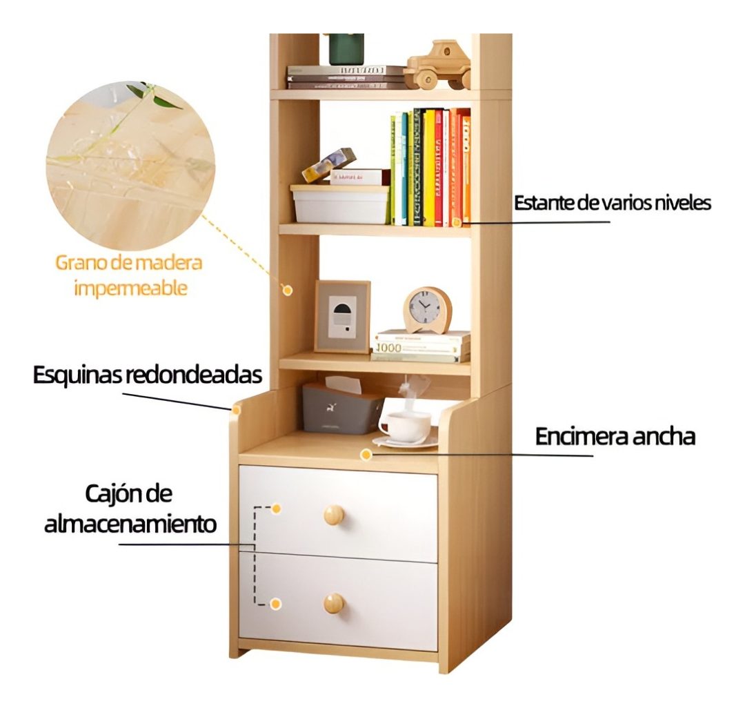Con un largo de 40 cm y un ancho de 30 cm, este librero requiere ensamblado pero no es montable en la pared. Fabricado en madera de alta calidad, este producto es duradero y elegante. Con un estilo minimalista, se adapta a cualquier tipo de decoración y no tiene fecha de vencimiento. Ideal para mantener tus libros ordenados y a la vista en tu mesilla de noche.