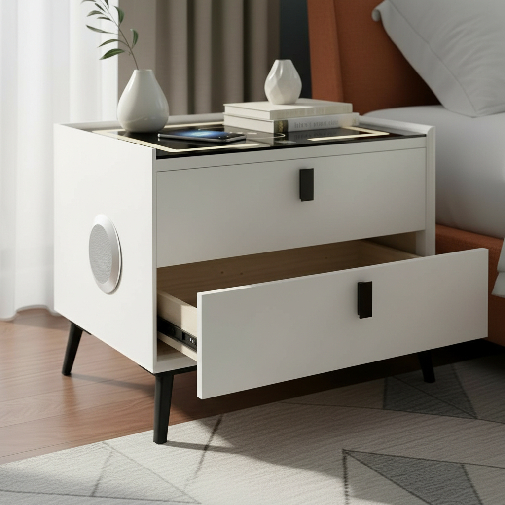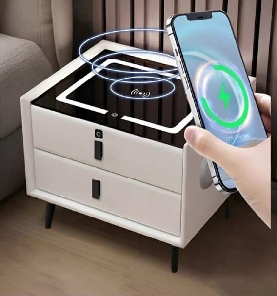 Mesita de Luz con carga inalámbrica/USB: Con puerto USB- A / USB-C y función de carga inalámbrica. El puerto USB permite cargar dispositivos móviles como teléfonos, tabletas, lectores y más. El diseño del panel de carga inalámbrica facilita la carga, pero solo admite teléfonos móviles con carga inalámbrica integrada.