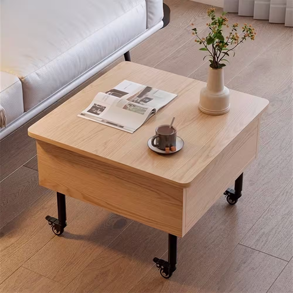 Mesa Ratona Mdf Elevación Cajón Oculto 55cm Con Ruedas
