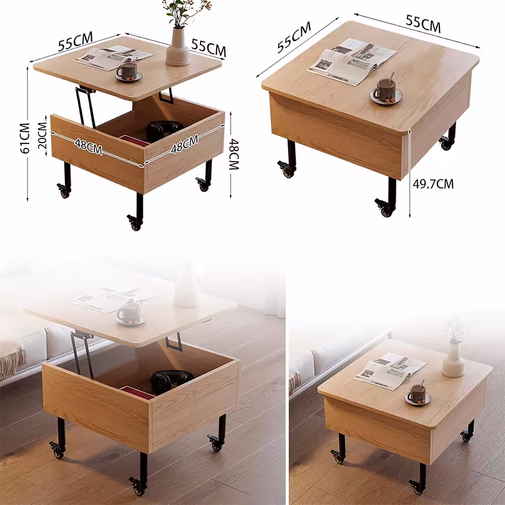 La Mesa Ratona MDF Elevación con Cajón Oculto de Carolinas Home es la solución perfecta para quienes buscan funcionalidad y estilo en su hogar. Con un diseño nórdico que se adapta a cualquier ambiente, esta mesa cuadrada de 55 cm de largo y ancho se convierte en un elemento esencial para tu sala de estar. Su altura de 50 cm y su acabado brillante aportan un toque moderno y elegante.