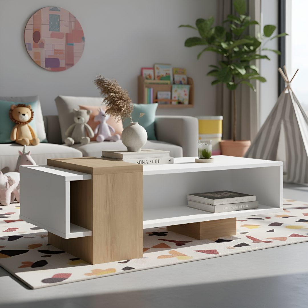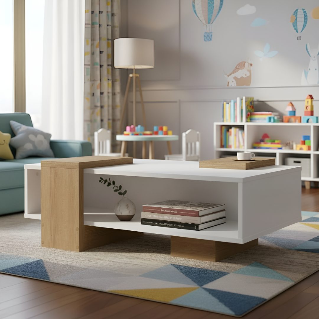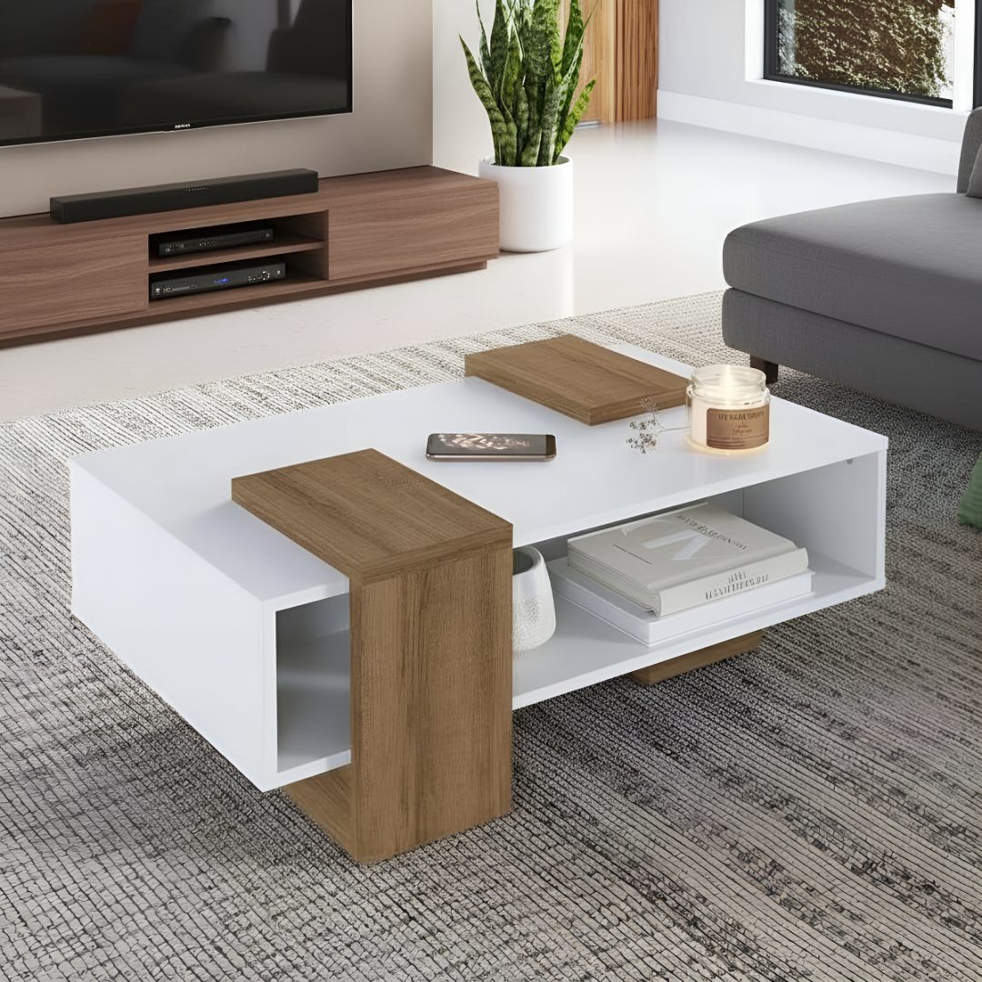 Mesa de centro moderna de diseño moderno con espacio de almacenamiento adicional.