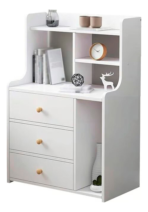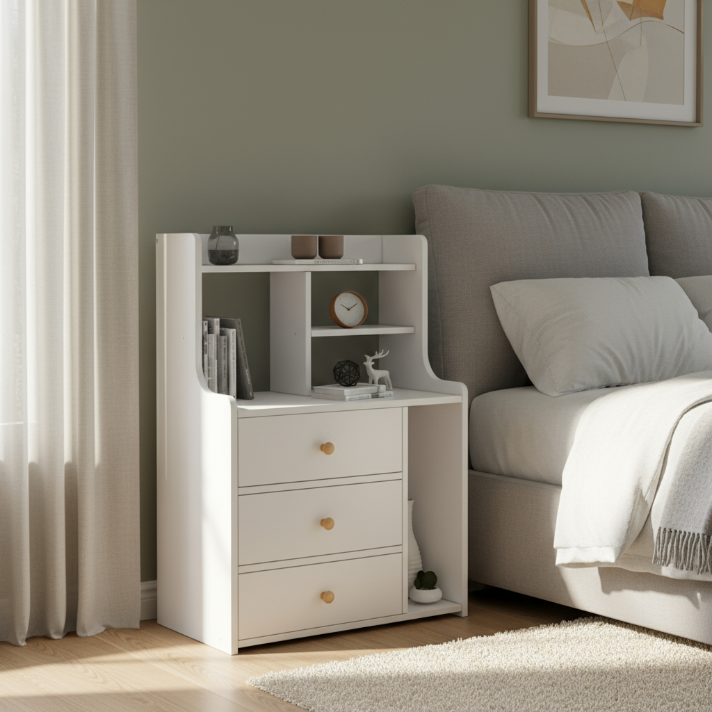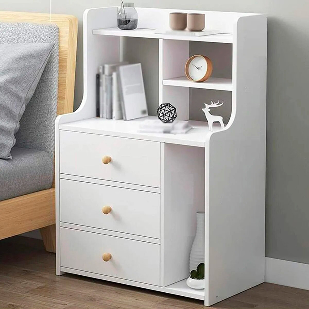 Mesita de noche nórdica contemporánea rectangular de madera con 3 cajones para dormitorio