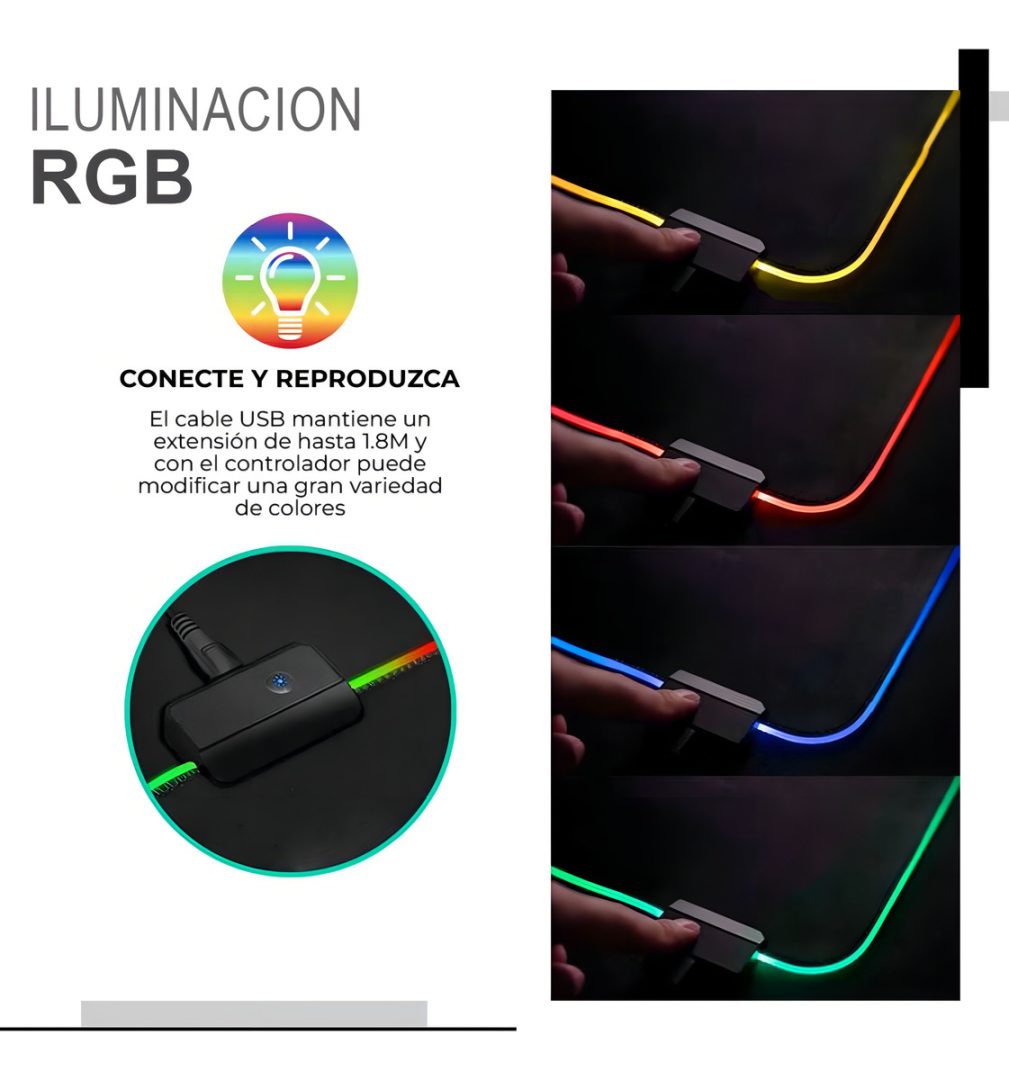 Este mousepad gamer iluminado te ayudará a darle un estilo gaming a tu setup ya que cuenta con tres modos de luz RGB y siete colores diferentes que se activan al conectarlo vía USB, también permanecerá estable en el escritorio ya que posee una textura fina y una base antideslizante.