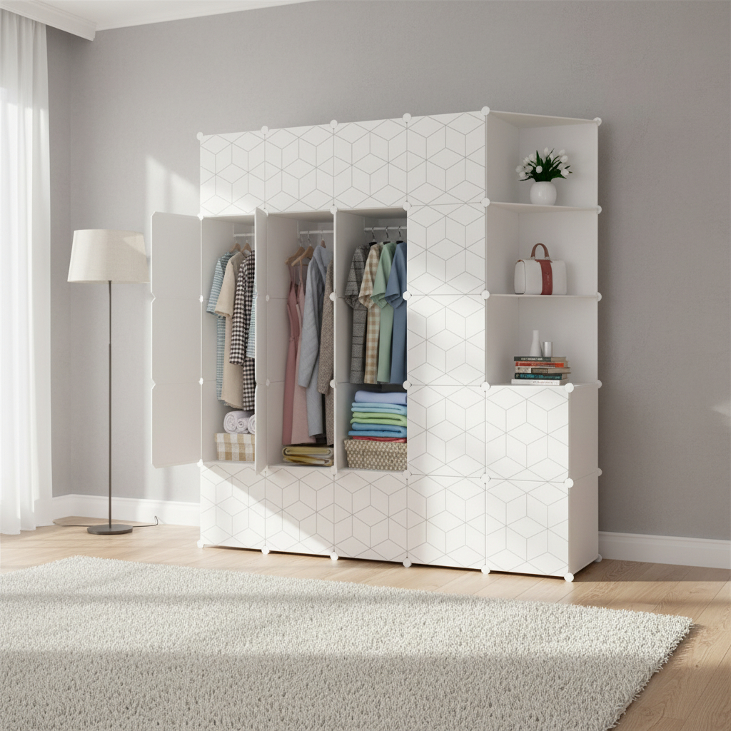 Descubre el Ropero Armario Organizador de Ultrashopuy, una solución ideal para quienes buscan optimizar su espacio sin sacrificar estilo. Con un diseño minimalista, este armario cuenta con 25 módulos que ofrecen una amplia capacidad de almacenamiento, permitiendo organizar ropa, calzado y accesorios de manera eficiente.