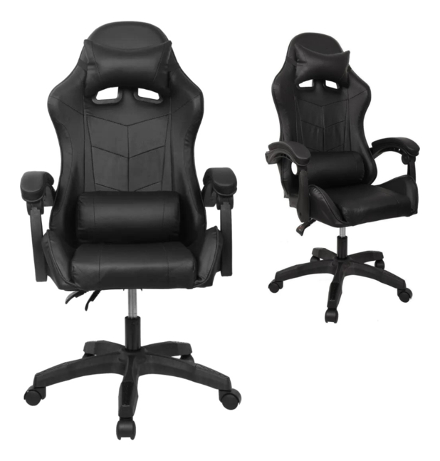 Silla giratoria ergonómica de carreras para oficina, videojuegos y trabajo,Silla reclinable para gamers con masajeador (negro)